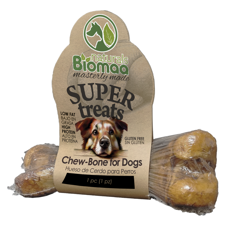 Tradicionalmente los perros han sido asociados con los huesos de otros animales como festín, ya sea desde los dibujos animados o las representaciones publiciatrias, si bien hoy sabemos que la alimentación de estas mascotas es mucho más elaborada y compleja, el gusto por estos por parte de los caninos sigue siendo una suerte de golosina. En Biomaa Naturals les ofrecemos un hueso completamente deshidratado y ahuamdo al horno para resaltar el sabor del mismo sin perder su naturaleza con la certeza de ofrecerles un producto seguro para su salud.